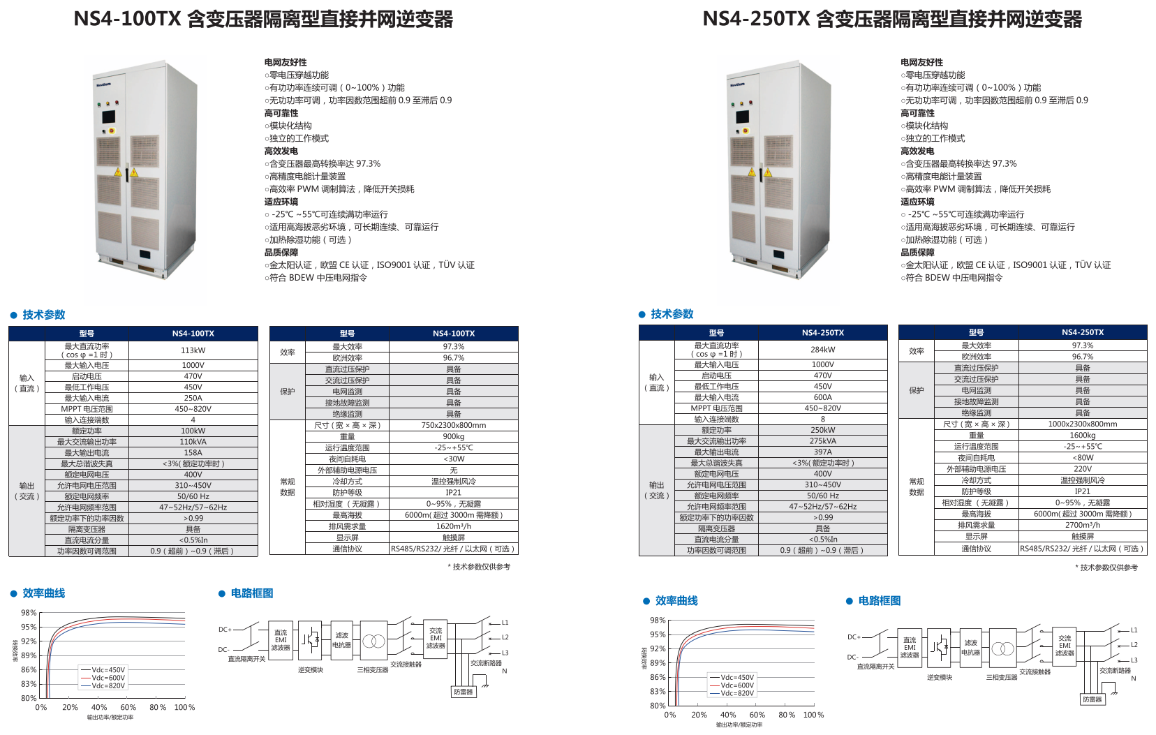 1.NS4-T系列含變壓器隔離直接并網型逆變器(100kW、250kW、500kW、630kW)
